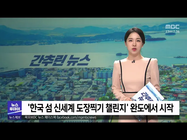 ◀ANC▶ 오늘의 간추린 뉴스입니다. 한국섬진흥원은 광주신세계와 '한국 섬 신세계 도장찍기 챌린지' 시즌2를 시작하기로 했습니다. 도장찍기 챌린지는 섬 길을 걷고, 일정 목표걸음 수가 모이면 섬 주민들에게 식료품을 전달하는 것인데 시즌 2 대상지는 완도 노화,보길,소안도로 5천만 걸음 달성 시 20인 미만 섬주민들...