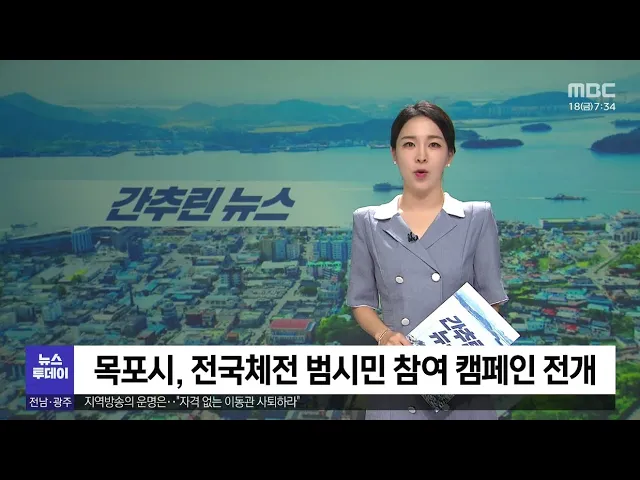 ◀ANC▶ 오늘의 간추린 뉴스입니다. 목포시가 전국체육대회와 전국장애인체육대회 성공 개최를 위해 범시민 참여 캠페인을 전개했습니다. 이번 캠페인에는 3백여 명의 시민들이 참여해 북항 상가밀집 지역에서 전국체육대회를 홍보하고 구체적인 시민 실천방법을 알리는 캠페인을 전개했습니다. ------- 신안군 퍼플 섬에 ...