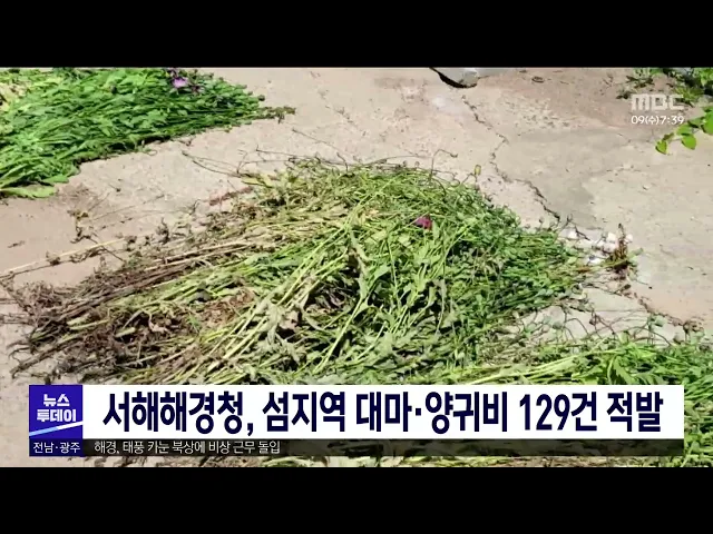 서해지방해양경찰청은 대마와 양귀비 수확기를 맞아 집중 단속에 나서 129건을 적발했습니다. 해경은 완도의 한 주택 텃밭에 양귀비 102주를 재배한 60대 여성 등 양귀비 밀경작 사범 127명과 대마 취급 사범 3명을 적발해 대마 25.3g과 양귀비 8,046주를 압수했습니다.