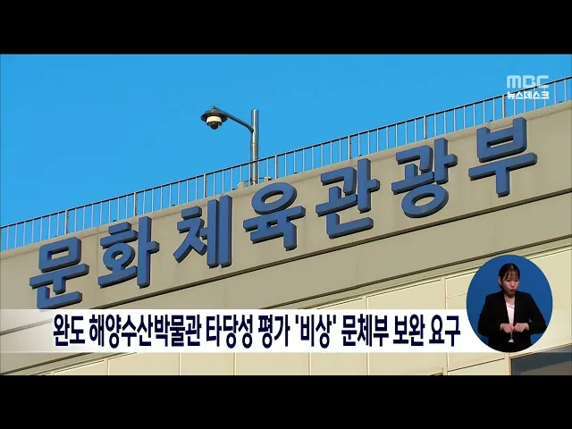 문화체육관광부가 완도에 건립될 예정인 국립해양수산박물관 사전타당성 평가에 대해 보완 요구를 내렸습니다. 전라남도는 아직 해수부로부터 구체적인 보완 사항을 전달받지 못했는데 평가자료를 보완해 오는 9월, 문체부 타당성평가를 재추진한다는 방침인 것으로 알려졌습니다. 한편 국립해양수산박물관 건립사업은 해양...