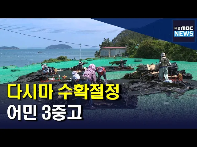 ◀ANC▶ 전남 완도 해역에서는 다시마 채취가 한창입니다. 가격은 예년보다 호조세 이지만, 이상기온으로 수확량은 줄고 인력난과 일본 원전오염수 방류 논란 등으로 3중고를 겪고 있습니다. 다시마의 섬, 완도 금일도를 신광하 기자가 다녀왔습니다. ◀VCR▶ 육지에서 여객선으로 20분 거리에 있는 전남 완도군 금일도....