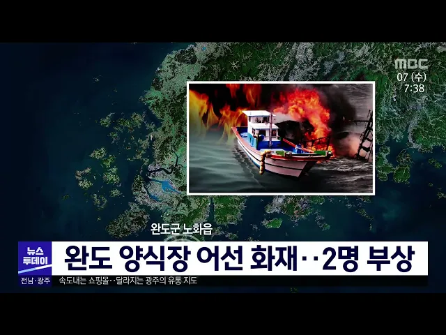 어제(6) 밤 11시쯤 완도군 노화읍의 한 양식장에 정박돼 있던 13톤급 어선에서 불이났습니다. 이 화재로 30대 한국인과 외국인 선원이 화상을 입어 병원으로 이송됐으며, 완도 소방서는 선박 수리 작업 등을 하다 유증기가 폭발한 것으로 보고, 선장과 목격자 등을 상대로 정확한 화재 원인을 조사하고 있습니다.