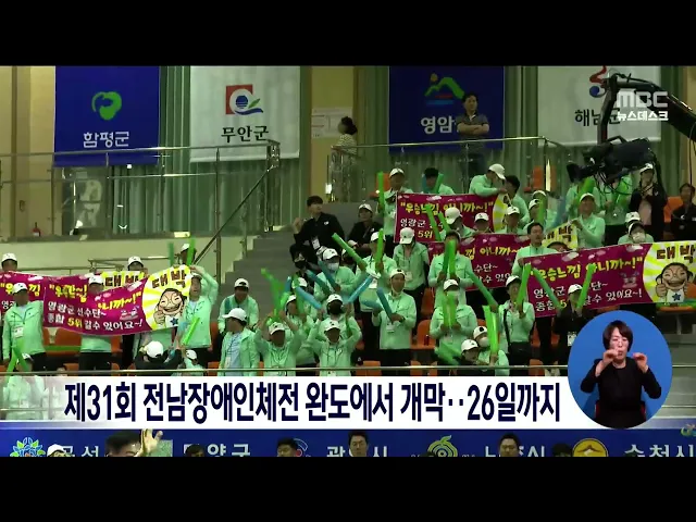 제31회 전남장애인체육대회가 오늘(24) 완도에서 개막했습니다. 전남장애인체전은 개막식과 환영리셉션을 시작으로 오는 26일까지 사흘동안 계속되며 게이트 볼과 골볼, 배구 등 21개 종목에서 22개 선수단 3천여명의 선수들이 기량을 겨룹니다. 올해 대회는 테니스와 양궁 등 시범 6종목이 정식종목으로 추가됐습니다.