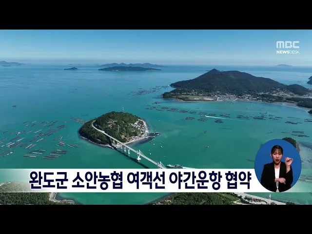 완도군과 소안농협은 화흥포에서 소안항까지 여객선 야간운항 협약을 체결하고, 소안항에서는 매일 저녁 7시50분, 화흥포에서는 저녁 10시에 각각 출항하도록 했습니다. 완도-소안도 야간운항 협약이 체결되면서 노화, 보길, 소안도 주민 만여명의 교통편의가 확보됐으며, 완도지역 여객선 야간운항은 지난 2천21년 약산, ...