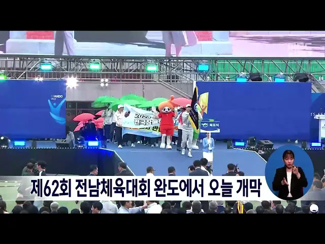 올해로 62회 째를 맞는 전라남도체육대회가 완도에서 시작됐습니다. 오늘 오후 완도군 공설운동장에서 열린 개회식에는 전남 22개 시군 7천여명의 선수와 임원들이 참가했습니다. '청정바다 완도에서 화합하는 전남체전'이란 주제로 열리는 이번 대회는 오는 15일까지 계속되며 정식종목 22개, 시범 1개, 전시 1개 등 모두 ...