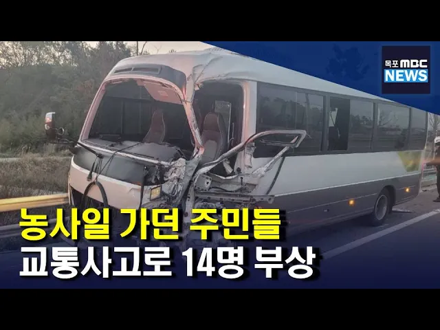 ◀ANC▶ 레미콘 차량이 중앙선을 넘어, 마주오던 미니버스와 충돌해 버스에 타고 있던 14명이 다쳤습니다. 대부분 농사일을 하러 가던 주민들이었는데 하마터면 대형 인명피해로 이어질 뻔했습니다. 박종호 기자가 취재했습니다. ◀END▶ ◀VCR▶ 달리던 레미콘 차량이 갑자기 오른쪽으로 가드레일과 부딪힙니다. 그 충...
