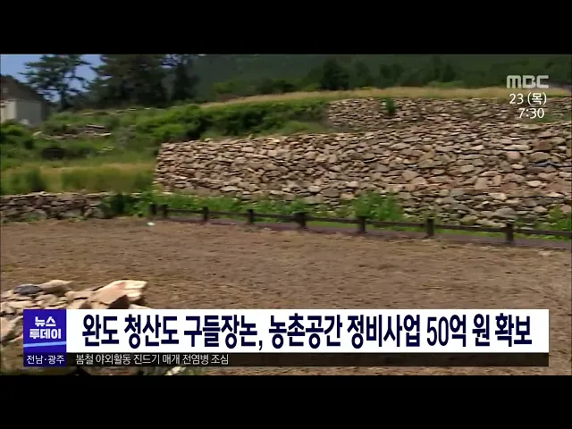 완도군이 농림축산식품부가 주관하는 농촌공간정비사업 공모에 선정돼 청산도 구들장 논 농업유산지구내 축사와 빈집 등 유해 시설 철거와 재생사업을 추진합니다. 완도군은 정비된 공간에 귀농·귀촌인을 대상으로 임대주택을 마련하고, 복원된 구들장논을 영농시설로 제공할 예정입니다.