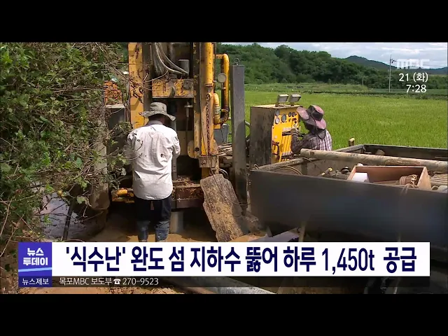 한국농어촌공사는 심각한 가뭄으로 식수난을 겪고 있는 완도 섬지역에 생활용수를 공급하기 위해 총력을 기울이고 있습니다. 한국농어촌공사 전남지역본부는 완도군과 업무협약을 맺고 추진한 '섬 지역 긴급 지하수 개발'에 성공해 하루 1450톤의 용수를 공급할 수 있게 됐다고 밝혔습니다. 한국농어촌공사와 완도군은 지난...
