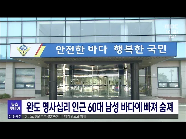 오늘 새벽 00시30분쯤 완도군 신지명사십리 해수욕장 인근에서 60대 남성이 바다에 빠져 숨졌습니다. 완도해경은 지인이 바다에 들어간 뒤 움직임이 없었다는 목격자의 진술을 토대로 정확한 사망 원인을 조사하고 있습니다.