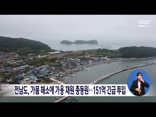 전라남도가 역대급 가뭄을 대응을 위해 용수 공급 예산 151억원을 긴급 투입합니다. 전라남도는 식수난이 심각한 완도 넙도와 소안도 등에 해수담수화시설과 지하저류지댐 시험 가동 예산을 긴급 편성했으며 영농철을 앞두고 농업용수 확보를 위해 저수지 물 채우기와 관정 개발에 관련 예산을 투입하기로 했습니다. 또 근...