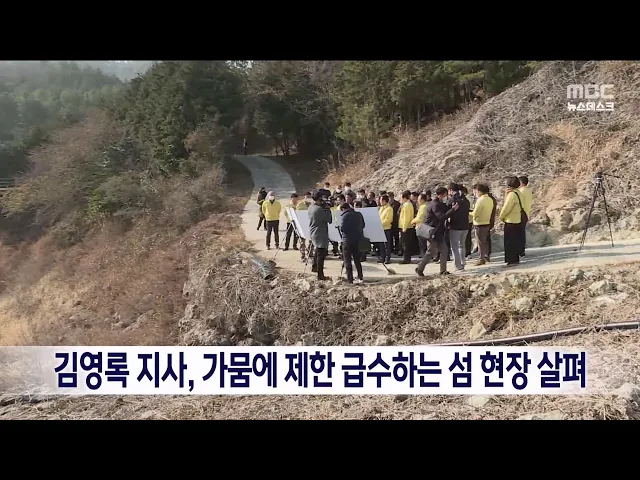 김영록 전남지사는 장기가뭄으로 제한급수를 하고 있는 완도 금일도 상수원 저수지를 살피고 주민들의 애로사항을 청취했습니다. 김 지사는 광역상수도 공급사업이 신속하게 추진되어야 한다고 강조하고 지역민들께서 가뭄에 어려움이 있겠지만 잘 견디면서 절수에 노력해주길 바란다고 당부했습니다. 완도군 금일과 노화, ...