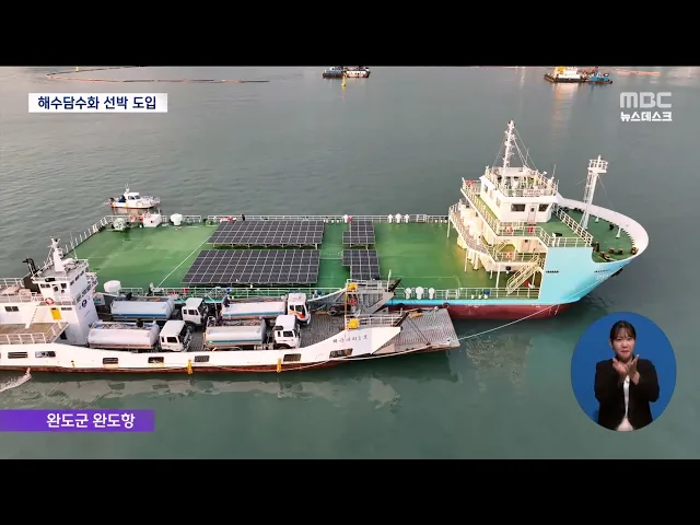◀ANC▶ 바닷물을 담수로 바꾸는 이동식 해수담수화 선박이 서남해 섬 지역에 투입됐지만 섬마을에 충분한 양의 물이 공급되지 못하고 있습니다. 해수담수화 선박의 담수 생산능력에 비해 공급량이 절반에도 미치지 못하고 있는데요. 그 이유가 무엇인지 양정은 기자가 취재했습니다. ◀END▶ ◀VCR▶ 완도항에 배치됐던...