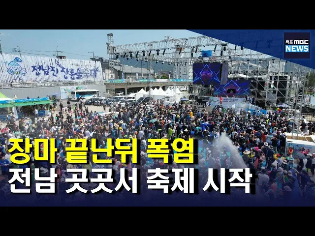 ◀ANC▶ 올여름 장마가 마무리되고 이제 폭염이 이어지고 있습니다. 정남진 장흥 물축제장에는 수많은 관광객과 주민이 찾아 모처럼 뜨거운 여름을 만끽했습니다. 박종호 기자가 취재했습니다. ◀END▶ ◀VCR▶ 장흥군 거리 곳곳이 관광객과 지역민들로 가득찼습니다. 사람들마다 손에 쥔 물총으로 시원한 물을 뿌립니다...