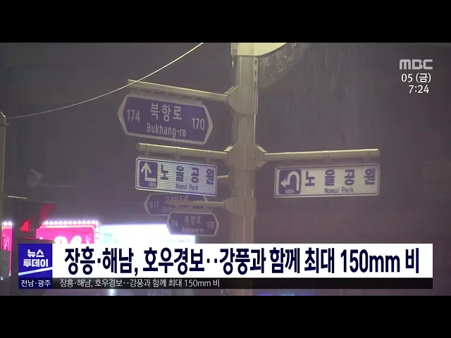 어제 밤부터 전남지역에 강풍과 함께 많은 비가 내리면서 호우특보가 발효됐습니다. 장흥과 해남에는 호우경보가, 완도와 영암 등 12개 지역에는 호우주의보가 내려졌습니다. 지금까지 내린 비는 완도 보길도 230mm를 최고로 해남 214mm 등을 기록했습니다. 이번 비는 내일까지 해안가에 최대 150mm, 그밖의 지역에는 최대 ...