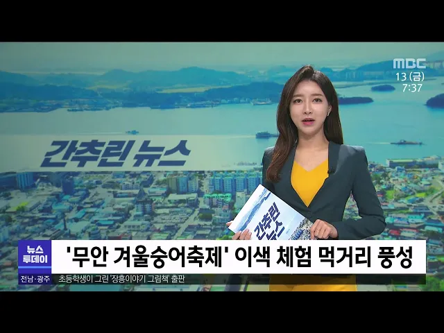 ◀ANC▶ 오늘의 간추린 뉴스입니다. 장흥군이 초등학생들이 직접 쓴 글과 그림으로 엮은 '장흥이야기 그림책' 출판기념회를 열었습니다. '장흥이야기 그림책'은 장흥남초 학생들이 장흥 지역의 대표 설화를 16권의 책에 담은 것으로 정남진 도서관에 비치돼 누구나 볼 수 있습니다. -------- 완도에서 레드향과 한라봉, 천...