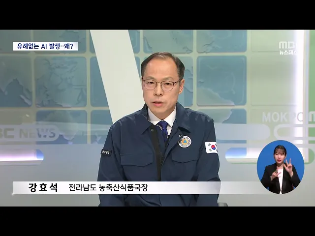 ◀ANC▶ 전국의 고병원성 AI 가운데 40% 이상이 전남에 집중돼있어서 특단의 조치가 필요할 것 같은데요 강효석 전라남도 농축산식품국장 모시고 자세한 이야기 나눠보겠습니다. ◀END▶ ◀VCR▶ 1. 올들어 전남에 고병원성 AI가 집중 발생하고 있는 이유는 뭐라고 보십니까? 금년도 AI가 이렇게 기승을 부리는 것은 전...