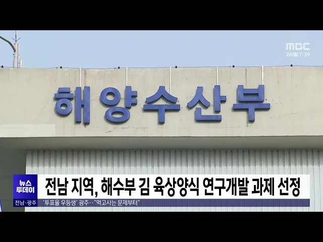 올해 처음 추진된 해양수산부의 김 육상양식 기술개발 과제에전남 지역 연합체가 선정됐습니다.전남도는 해수부의 김 육상양식 기술개발 연구개발 과제에 고흥군과 대상, 하나수산 등이참여한 컨소시엄이 꼽혔다고 밝혔습니다.이들은 기후변화에 대비한 김 수급 안정화와식품 안전성 확보를 목표로 연중 대량 생산이가능한 ...
