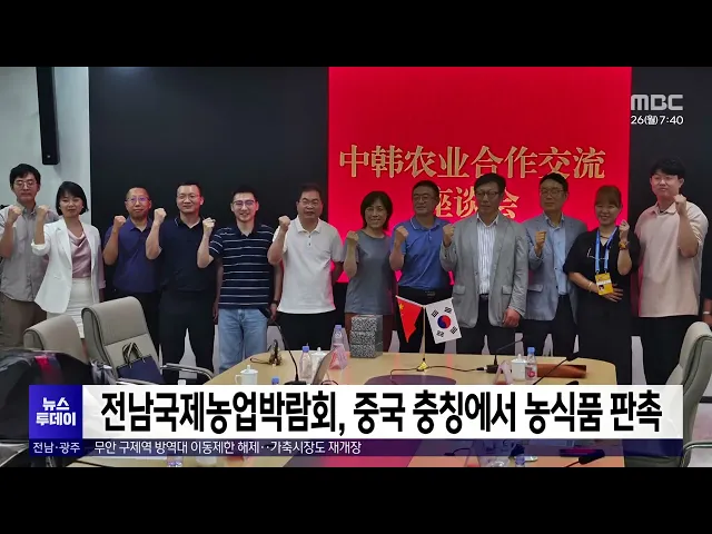 재단법인 전라남도국제농업박람회는 어제(24)까지 닷새 동안 중국 충칭에서 열린제7회 중국 서부국제투자무역박람회에서 전남관을 운영해 전남 농식품 판촉활동을 펼쳤습니다.전남도농업기술원과 전남 지역 5개 농식품기업이 함께한 전남관에서는유자, 고구마 등 전남 특화 품목을 활용한가공식품이 소개됐고, 충칭시농업위...