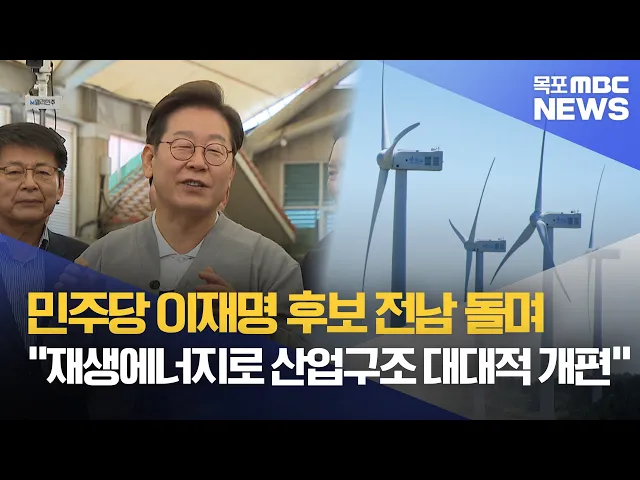 ◀ 앵 커 ▶더불어민주당 이재명 대통령 후보가 오늘(15일)전남 주요도시를 돌며 "재생에너지"를 거듭 언급하며 전남 발전의 청사진을 내놨습니다.이 후보의 "재생에너지"언급의 의미를김 윤 기자가 짚어봤습니다.◀ END ▶◀ 리포트 ▶전남지역의 지난 2023년 기준 전력자립률은 199%에 이르고 있습니다.발전량은 원자력이 가장 ...