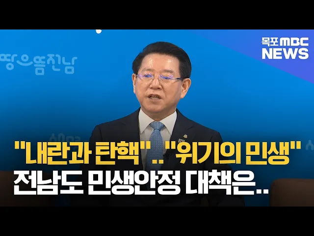 ◀ 앵 커 ▶윤석열 대통령의 탄핵안이 가결되면서 전라남도가 오늘(16일) 기자간담회를 갖고 천백억 원대의 민생안정대책을 발표했습니다.또한, 통합 전남국립의대도 어려움이 부분만 부각하면 동력이 떨어질 수 있다며 "자신감과 의지"를 강조하고 나섰습니다.김 윤 기자가 보도합니다.◀ END ▶◀ 리포트 ▶12.3 내란사태 11일...