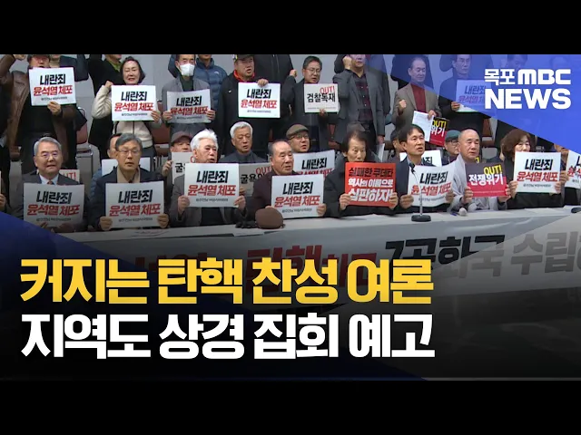 윤석열 대통령의 탄핵소추안 표결이 무산되면서 지역 시민사회단체가 오는 11일까지 시국선언과 촛불문화제 등을 추진합니다.완도에서 오늘(8) 청년회관에서윤 대통령 탄핵과 김건희 특검 등을촉구하는 규탄대회가 이어졌습니다.또, 목포비상시국회의는 내일(9)긴급 성명서를 발표할 예정이며,장흥과 진도 등 전남 서부권 ...