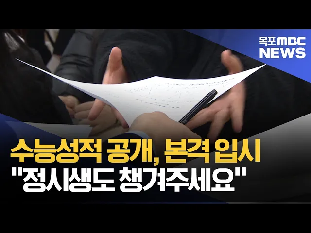 ◀ 앵 커 ▶수능성적표가 공개된 오늘, 수시 비중이 높은 전남 학생들의 입시레이스도 본격적으로 시작됐습니다.학교 현장에서는 상대적으로 비중이 적은 정시 전형을 노리는 학생들을 위한 지원이 더 필요하다는 목소리도 나오고 있습니다.안준호 기자가 취재했습니다.◀ 리포트 ▶수능이 끝난 교실, 교탁 위로 수능성적표가 ...
