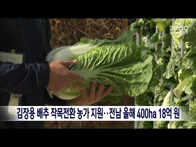 전라남도는 김장용 가을배추의 적정 생산과안정적 판로 확보를 위해수급 안정 대책에 나섭니다.배추 작목전환 지원사업은올해 400헥타르에 18억 원을 지원하며대상 농업인에게 소득감소분의 일부인헥타르당 450만 원이 지급됩니다.대체작목으로는 유채와 귀리 등이며, 보리와 밀은 지역농협 등과 계약 재배를 통해판로가 확...