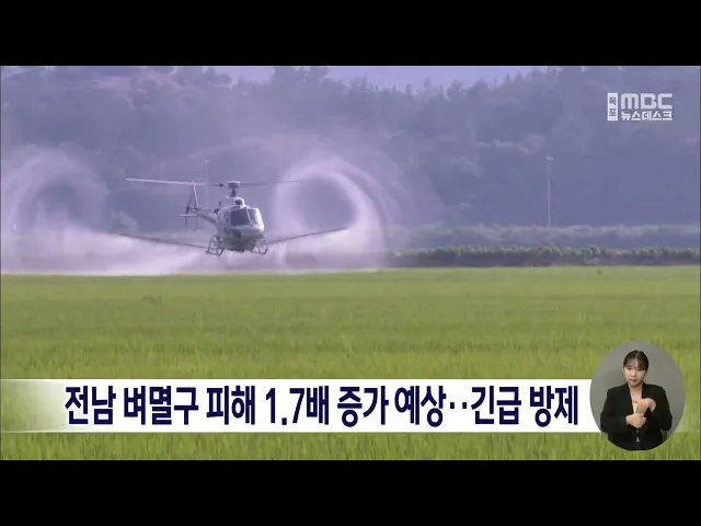 기록적인 폭염으로논에 벼멸구가 급속히 확산하면서수확기 벼 피해 우려가 커지고 있습니다.전라남도는올해 벼멸구 피해 발생 면적이평년보다 1.7배 증가한 6,600여 헥타르로 예측된다며 오는 22일까지 벼멸구 방제비 32억 원을 지원하고 전담지도사 70여 명을 긴급 투입하는 등 지원을 강화합니다.해남군에서도 관내 벼 재...