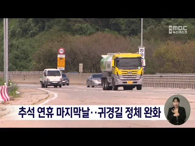 추석 연휴 마지막 날인 오늘(18), 오후 4시쯤 절정에 달하던 귀경길 정체가 점차 완화되고 있습니다.한국도로공사는 오후 8시 기준 목포에서 서서울까지 3시간 40분 소요돼 평소와 비슷한 수준이라고 밝혔습니다.또, 정체는 밤 11시쯤 완전히 해소되고,오늘(18) 하루 동안 차량 48만 5천여 대가 광주와 전남 지역을 빠져나...