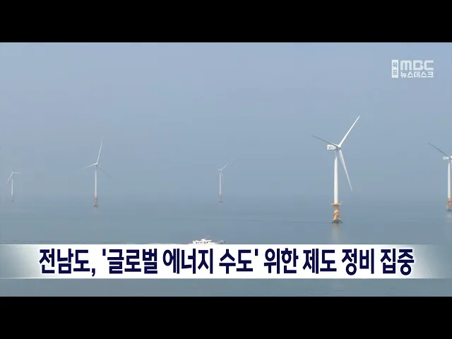 전라남도가 재생에너지 대표 4법 제*개정안을직접 마련해 정부에 건의하는 등 '글로벌 에너지 수도' 도약을 위한발판 마련에 나섰습니다.4대 법률 가운데 '해상풍력 특별법'은 지자체의 예비지구 신청 권한을 강화하고,'영농형 태양광 특별법'은사업영역을 농업진흥구약까지 넓히는방향으로 제정이 추진됩니다.또, 전력계통...