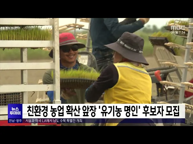 전라남도가 독창적 영농기술로 유기농업 실천에앞장서온 농업인을 대상으로 오는 30일까지 '유기농 명인' 후보자를 모집합니다.모집대상은 벼와 과수, 축산 등 분야에서재배 면적 3천300제곱미터 이상 유기인증을 받고 5년 이상 유기농업을 실천한전남 거주 농업인입니다.지정 명인은생산 제품에 전남도 유기농 명인공동브...