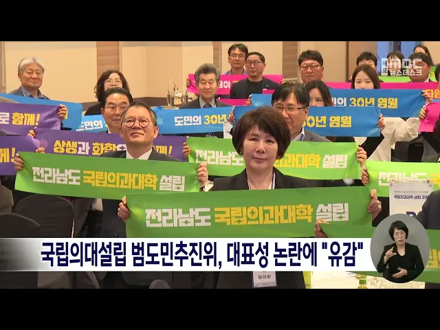 전남 국립의대 설립 범도민추진위원회의 대표성 논란이 제기된 것과 관련해 추진위 측이 유감을 표명했습니다.범도민추진위원회 허정 공동위원장은 오늘(18일) 보도자료를 통해 "최근 일부 언론에서 범도민 추진위의 도민 대표성 논란과 관련해 국립의대를 전남에 설립하기 위해 모인 333명 위원들의 열정을 깎아 내리는 것...