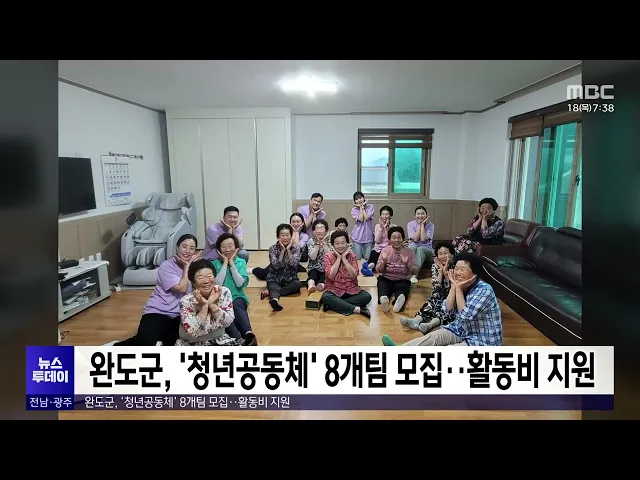 완도군이 전남형 청년 공동체 활성화 사업에참여할 팀을 다음달 29일까지 모집합니다.전남형 청년 공동체 활성화 사업은청년 공동체를 발굴해 지역사회 활동 기반 마련을 도모하는 사업으로 모두 8개 팀을 모집합니다.지원가능 분야는 지역 연계 행사와 프로그램 운영,콘텐츠 제작 등이며, 선정된 팀에는 과업 수행비와 홍...