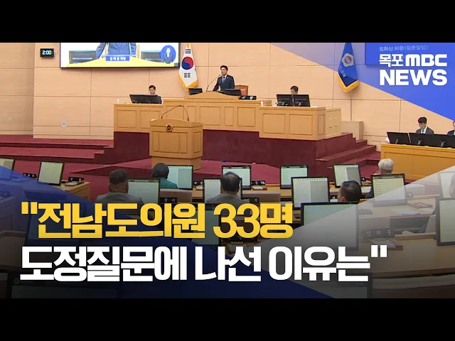 ◀ 앵 커 ▶전남도의회 도정질의가오늘(16일)부터 나흘 동안 이어지고 있습니다.이번 도정질의는참여의원도 역대 최다인데다질의기간도 통상 사흘에서 하루 늘어난 나흘간진행되고 있습니다.김 윤 기자가 보도합니다.◀ END ▶◀ 리포트 ▶전남도의회 393회 임시회 도정질의가 역대 최다인 의원 33명이 참여해 시작됐습니다.당초 ...