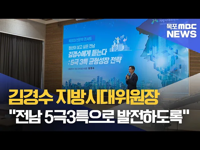 ◀ 앵 커 ▶기존 수도권 중심이 아닌 지역이 함께 사는 국가균형발전은 이재명 대통령 정부의 핵심 과제입니다.전남을 찾은 김경수 지방시대위원장이5극3특 성장 전략을 재차 강조하며,지역에 대한 전폭적인 지원을 약속했습니다.안준호 기자가 취재했습니다.◀ 리포트 ▶지방자치분권과 지역균형발전을 목표로 하는 지방시대위...