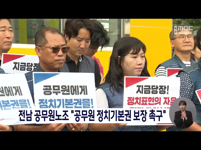 전국공무원노동조합 전남지역본부가 국회에 공무원 정치기본권 보장을 위한법안 개정을 촉구했습니다.이들은 오늘(8) 더불어민주당 전남도당 앞에서 기자회견을 열고 "정당 가입은 물론 최소한의 정치적 의사표현이 금지된 현행 법안은 명백한 인권침해이자민주주의의 퇴행"이라며 이같이 밝혔습니다.이어 "독일과 프랑스 ...