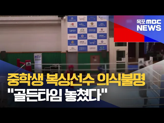 ◀ 앵 커 ▶제주에서 열린 복싱대회에 출전한전남의 한 중학생 선수가 경기를 하던 중 머리를 크게 다쳤습니다.중학생은 뇌수술을 받았지만일주일째 의식불명 상태에 빠졌는데, 병원으로 옮기는 시간이 늦어져골든타임을 놓쳤다는 주장이 나오고 있습니다.조인호 기자입니다.◀ 리포트 ▶제주에서 열린 남자 중학생 선수들의 복...