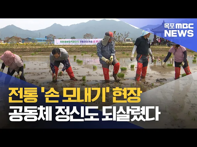◀ 앵 커 ▶본격적인 모내기철.고령화와 일손 부족으로 대부분의 농촌에선기계가 사람을 대신하고 있습니다.이런 가운데 (전남) 영암에서는사람이 직접 손으로 모를 심는전통 방식의 '손 모내기'가 펼쳐졌는데요.잊혀져 가던 농촌의 공동체 정신도함께 되살아나고 있습니다.박종호 기자입니다.◀ 리포트 ▶갯벌빛 논 한가운데농...