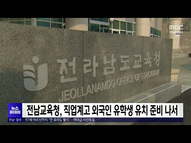 전라남도교육청이내년도 외국인 유학생 모집·선발을 앞두고 유학생 유치와 운영 기반 준비에 나서고 있습니다.전남교육청은 몽골과 베트남, 우즈베키스탄, 카자흐스탄, 쿠바 등 국가와 협력 체계를 마련하고누리집에 외국인 유학생 모집·선발 메뉴를 개편했다고 밝혔습니다.또 내년도 외국인 유학생 유치 학교는 기존 5개교...