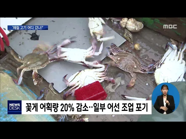 ◀ANC▶ 예년 같으면 남녘 바다에서는 요즘 꽃게가 넘쳐날 때인데 올해는 상황이 전혀 다릅니다. 꽃게 뿐만 아니라 병어,갑오징어 등 제철고기 어획량도 급감하면서 가격은 높게 형성되고 있습니다. 박영훈 기자가 취재했습니다. ◀END▶ 조업을 마치고 항구에 돌아온 어민들의 표정이 어둡습니다. 이 어선이 이틀간 잡은...