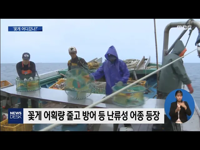 ◀ANC▶ 봄,가을 남녘 바다에서 들려오던 꽃게 풍어 소식이 사라지고 있습니다. 어획량이 크게 줄고, 어종 변화도 뚜렷해지고 있습니다. 박영훈기자가 취재했습니다. ◀END▶ 50여 척의 꽃게 잡이 어선들이 드나드는 전남 진도 서망항. 조업을 마친 어민들의 표정이 어둡습니다. 한차례 조업에 한척 당 많게는 1톤 이상 ...
