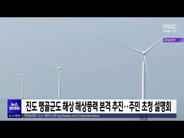 진도군 맹골군도 해상에서 600메가와트 규모의해상풍력 발전사업이 본격 추진되고 있습니다.'맹골도해상풍력발전'은 최근맹골도와 동·서거차도 지역 주민 120여 명을 대상으로 추진 설명회를 갖고,해상풍력 사업의 인허가 절차와 이익공유 사례 등을 소개하고 사업 계획을 발표했습니다.