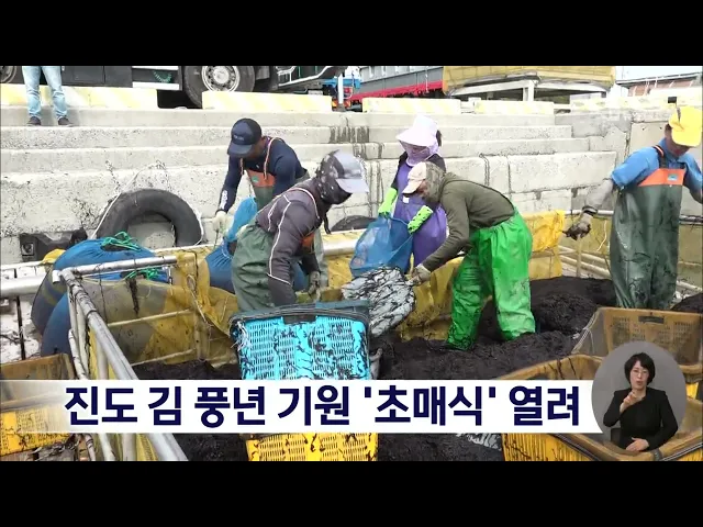 우리나라 최대 김 생산지인진도군에서 김 양식의 풍년을 기원하는초매식행사가 열렀습니다.진도군은 올해는 9월까지 수온이 25도를 기록하면서김 작황이 지난해보다 4% 정도 줄었지만10월 중순부터 수온 등이 회복돼 곱창김 가격이 최고가를 기록했다고밝혔습니다.