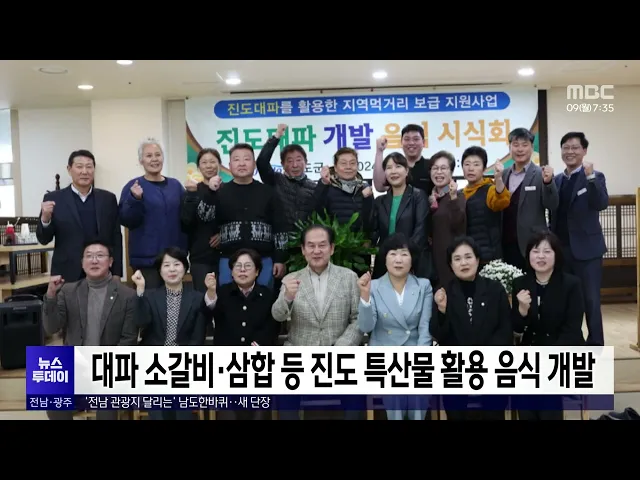 진도군이 지역 대표 특산물을 활용한 음식을개발하고 시식회를 가졌습니다.진도군은 대파의 단 맛을 활용한'진도 대파 즉석 소갈비'와 민물장어, 차돌박이를 대파 김치와 싸먹는 '진도 대파 삼합' 등 2가지 메뉴를 선보였습니다.또, 조리법을 공개하고 음식점에 무료로 제공한 뒤 4개 업소를 선정해 점포 환경 개선과 함께 ...