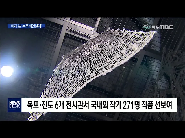 ◀ANC▶ '수묵'을 주제로 한 대형 전시회인 전남 국제수묵비엔날레가 오늘(31일) 개막했습니다. 수묵 비엔날레는 두 달 동안 예향 '목포와 진도'에서 열립니다. 국내외 작가들이 혼신의 힘을 기울여 창작한 다양한 수묵 작품이 전시되고 있습니다. 남은 것은 '수묵의 농담과 여백'을 채워줄 관람객들의 발걸음입니다. 박영...