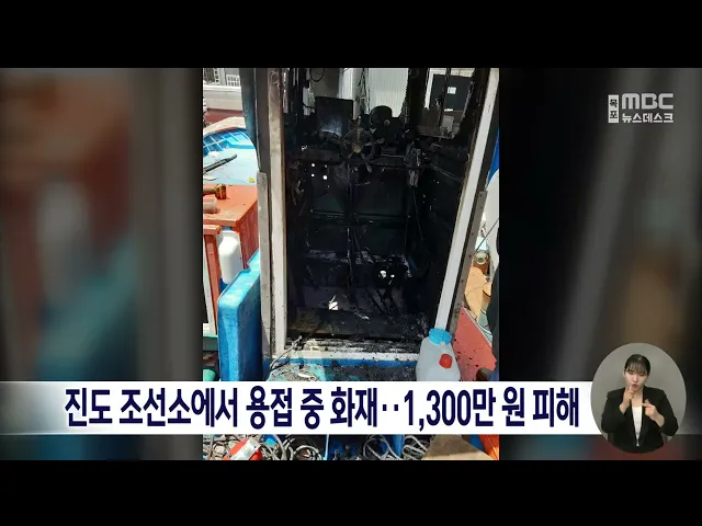 진도 조선소에서 용접 중 화재..1,300만 원 피해