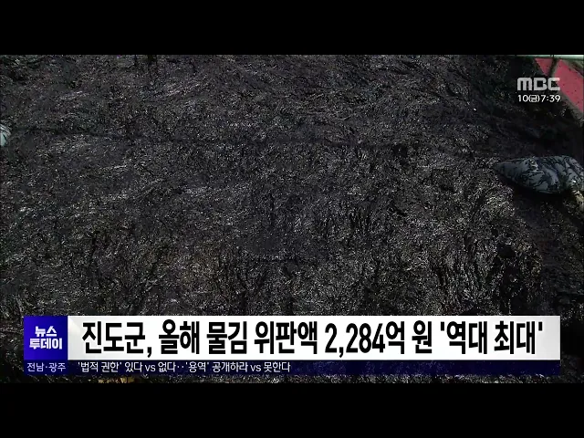 진도군의 2024년 물김 위판액이2천 2백 84억 원을 달성해 전국 1위와 함께 역대 최대치를 기록했습니다. 진도 지역 올해 물김 생산량은 10만 4천 3백 78톤으로지난해보다 10% 늘었고 위판액도 지난해 1천 1백54억 원보다 98% 증가한 것으로 나타났습니다. 진도군은 김 수출량 증가와 재고율, 채묘 시기의 갯병 발생률 감...