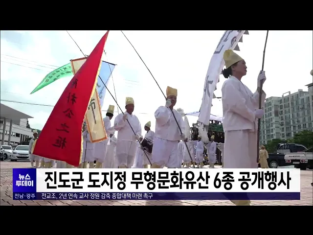 진도군이 도지정 무형문화유산인 진도북놀이와 진도만가, 진도소포걸군농악, 조도닻배노래 등 6종의 공개 행사를 진행합니다 이번 공개행사는 각 문화유산별 전승지를 중심으로 진행되고, 최근 지산면 진도만가와 진도소포걸군농악을 시작으로, 오는 25일에는 조도면에서 조도 닻배노래 공개행사를 진행합니다.