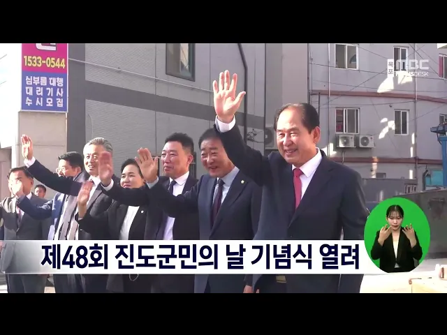 제48회 진도군민의 날 기념식이 오늘(1) 진도공설운동장에서 열렸습니다. 진도군민의 날 기념식은 유공자에 대한 표창, 읍면대항 화합행사와 축하공연 등이 펼쳐졌으며진도군은 군민의날을 기념해 지난달 21일부터 다양한 경연과 체험행사등을 이어가고 있습니다