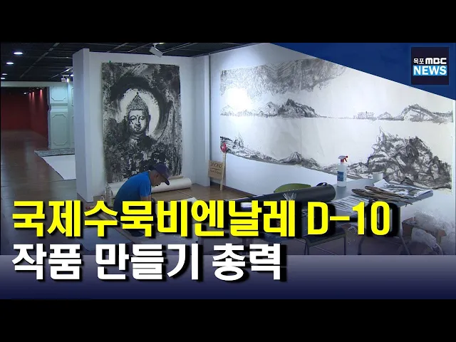 ◀ANC▶ 전남국제수묵비엔날레가 열흘 앞으로 다가왔습니다. 작가들은 막바지 작품 만들기에 총력을 다하고 있고 전라남도는 비엔날레 성공 개최를 위해 준비상황 점검이 이어지고 있습니다. 박종호 기자가 취재했습니다. ◀END▶ ◀VCR▶ 한지 위에 검은 먹을 이용해 인물과 사물 등 다양한 작품을 그립니다. 국제수묵...